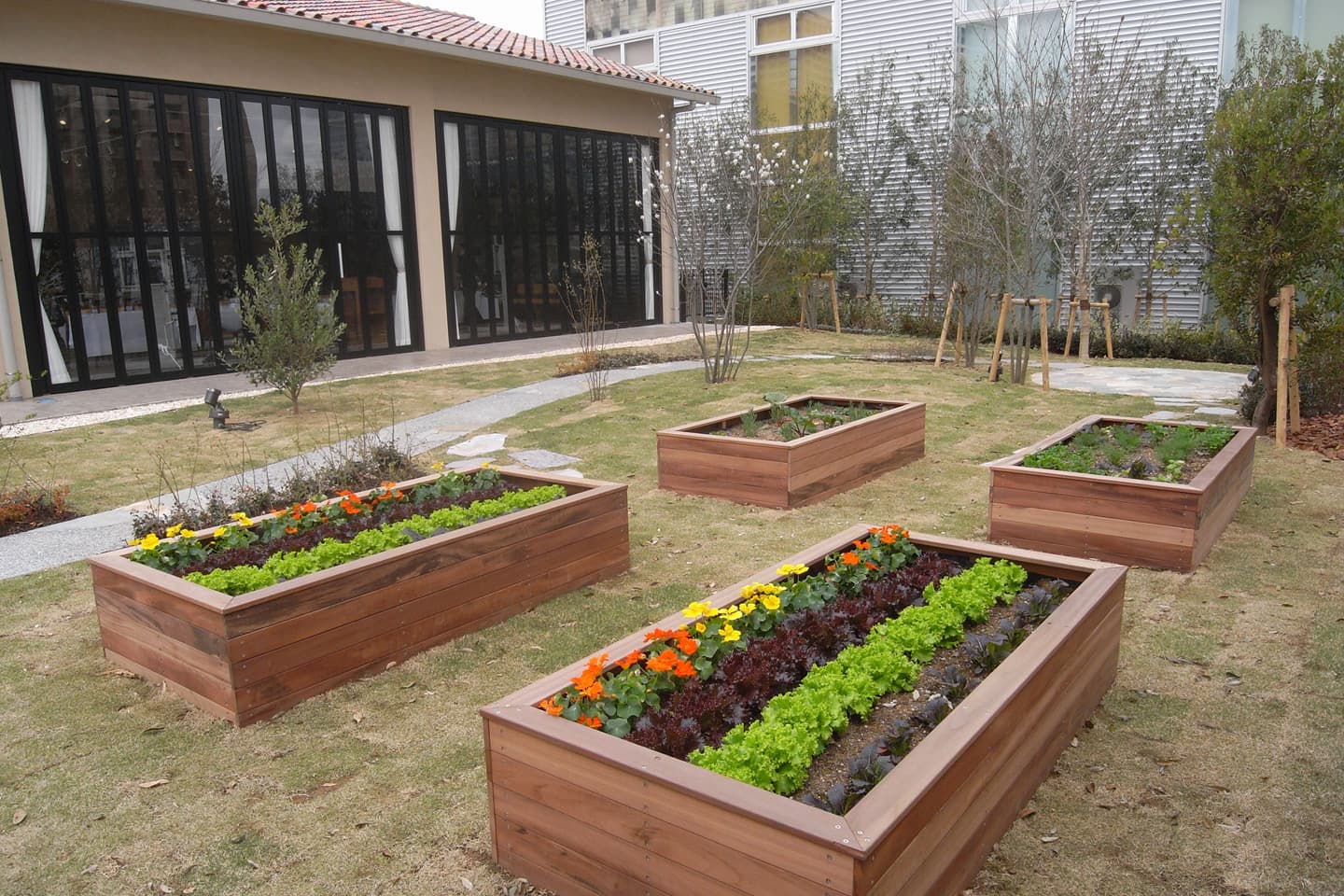 オークビレッジ柏の葉 2012年 千葉県柏市 KCJ GROUP #リゾート #造園建設 #関東 #2010年代 農園全体が大きなガーデン 有機栽培が楽しめる体験型貸農園です。 農園のほかに多くの果樹やオリーブによる植栽、井戸やバーゴラ・壁泉などの装飾が南イタリアを彷彿とさせます。