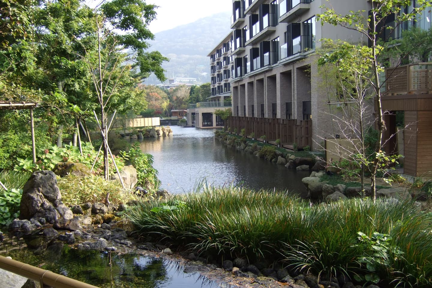 箱根としての環境を損なわないように自然素材による造景を行っています。